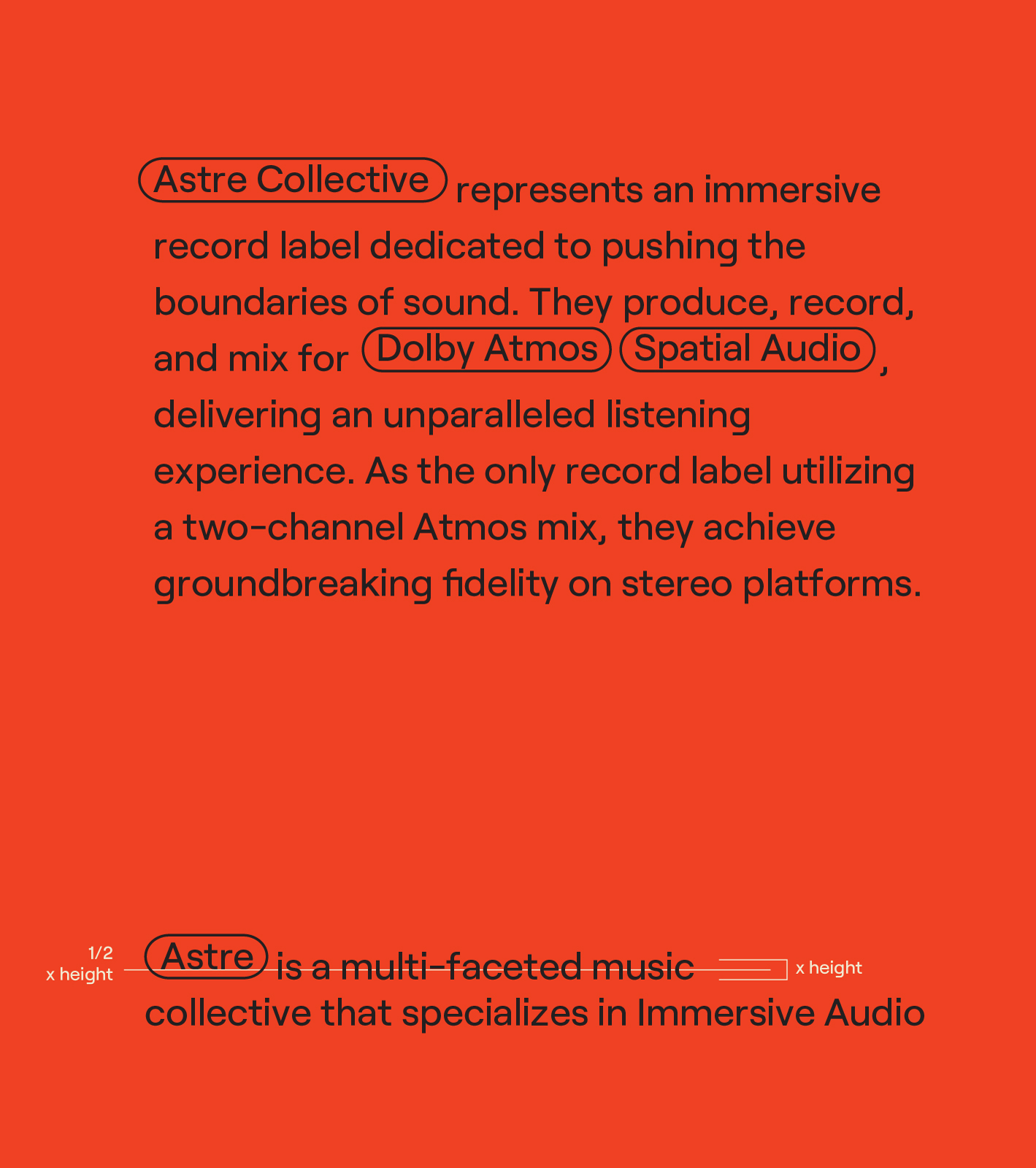 ASTRE Collective represents an immersive record label dedicated to pushing the boundaries of sound. They produce, record, and mix for Dolby Atmos / Spatial Audio, delivering an unparalleled listening experience. As the only record label utilizing a two-channel Atmos mix, they achieve groundbreaking fidelity on stereo platforms.